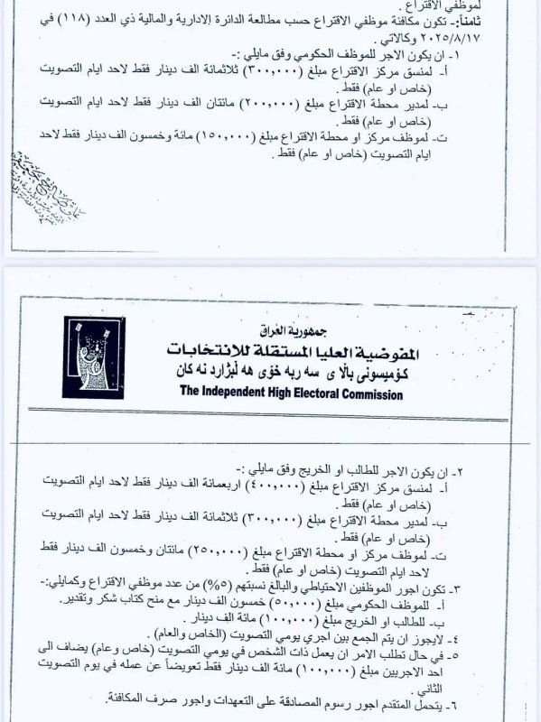 حددت المفوضية الانتخابات اجور موظفي الاقتراع الخاص والعام