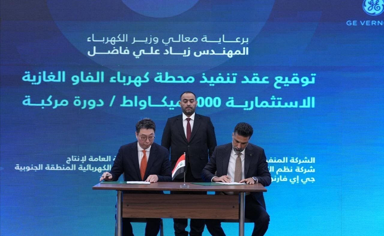 رعى وزير الكهرباء زياد علي فاضل، اليوم الخميس، توقيع عقد تنفيذ أكبر محطة غازية استثمارية في جنوب العراق بمحافظة البصرة، حيث تبلغ طاقتها الإنتاجية نحو3000 ميغاواط وتعمل بنظام الدورة المركبة.