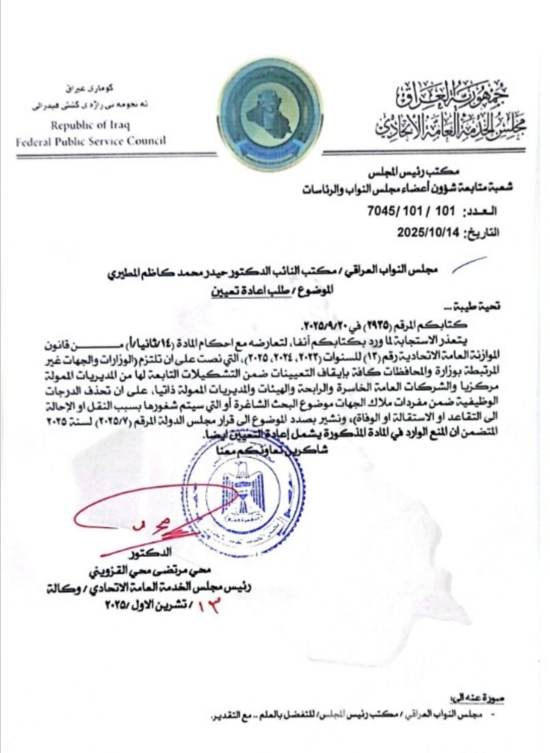 مجلس الخدمة الاتحادي: لا إمكانية لإعادة التعيين بسبب أحكام الموازنة العامة