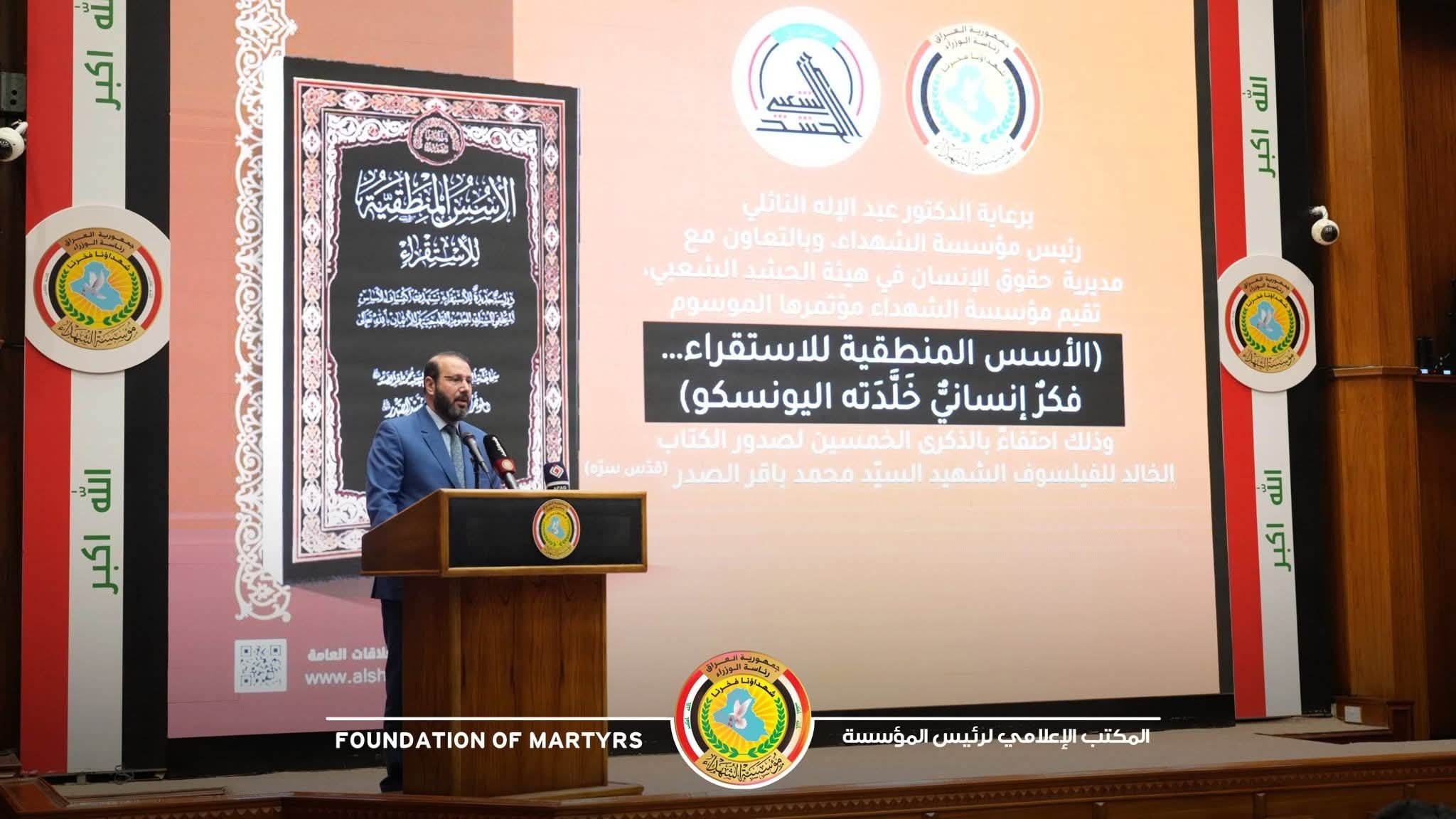احتفت مؤسسة الشهداء، بالتعاون مع هيئة الحشد الشعبي ومنظمة اليونسكو، بمرور خمسة عقود على صدور كتاب "الأسس المنطقية للاستقراء" للفيلسوف والمفكر الإسلامي السيد الشهيد محمد باقر الصدر (رض)، أحد أهم الأعمال الفكرية التي أسهمت في ترسيخ منهج جديد