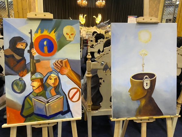 تلا ذلك افتتاح معرض فني تشكيلي ضمّ أعمال عدد من الفنانين، عبّروا من خلالها عن رفضهم للتطرف والعنف، مجسّدين عبر لوحاتهم رؤى إنسانية تعكس التسامح والحوار والعيش المشترك.