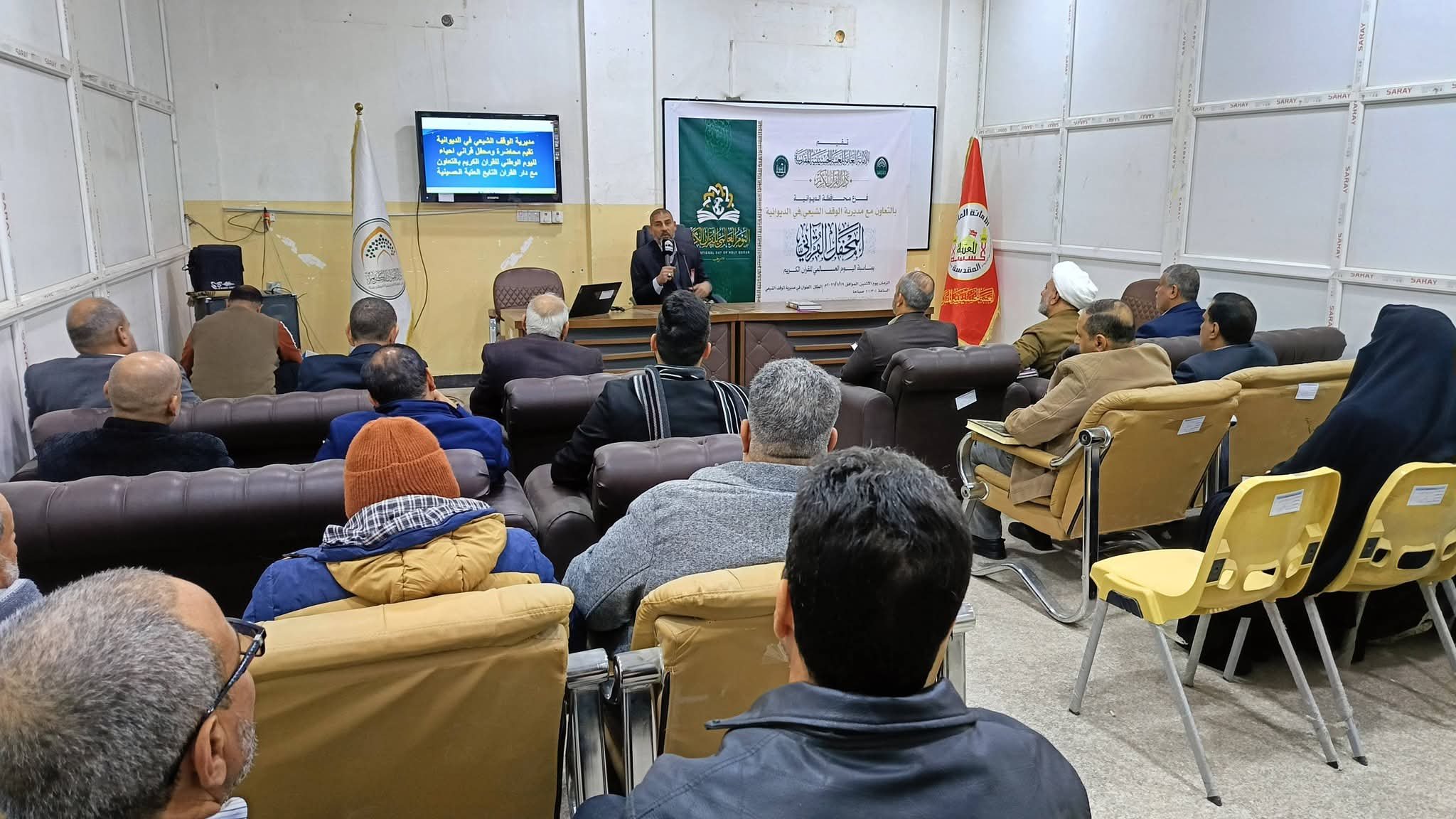 بتوجيه من مدير الوقف الشيعي في محافظة الديوانية، الأستاذ حيدر كامل صالح، أقامت وحدة علوم القرآن، وبالتنسيق مع شعبة الإعلام والاتصال الحكومي، وبالتعاون مع العتبة الحسينية، محاضرة دينية ومحفل قرآني بمناسبة اليوم الوطني للقرآن الكريم، وذلك في قاعة المديرية بحضور جمع من الموظفين والمهتمين بالشأن الديني والثقافي.