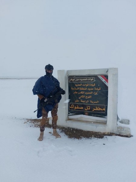أعلنت وزارة الداخلية العراقية أن مقاتلي قوات الحدود يواصلون واجبهم في حماية الشريط الحدودي العراقي – السوري، مؤكدّة أنهم يقفون في خط الصد الأول بوجه أي تهديدات محتملة، رغم الظروف الجوية الصعبة وتساقط الثلوج وانخفاض درجات الحرارة. وأوضحت الوزارة أن هذه الجهود تأتي ضمن الخطط الأمنية المستمرة لتعزيز أمن الحدود ومنع أي محاولات تسلل أو خرق أمني![]()
