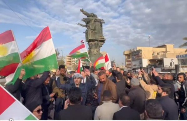 إلى جانب جموع من أبناء الكورد الفيليين وعدد من الإعلاميين، رافعين علم كوردستان ومرددين شعارات تضامنية مع كورد روجافا.