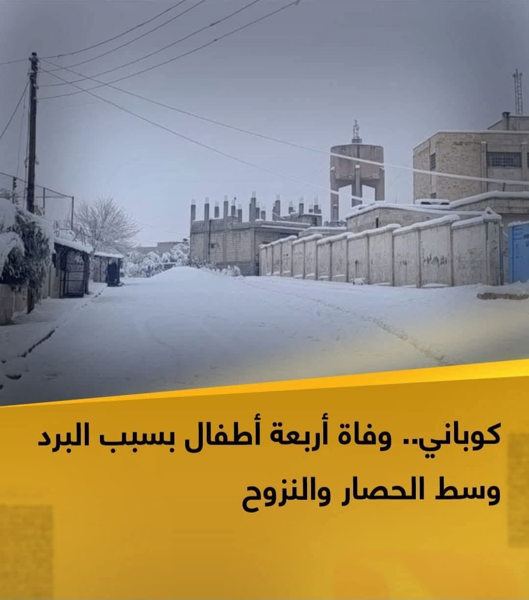 أعلن الهلال الأحمر الكوردي وفاة أربعة أطفال في مدينة كوباني نتيجة البرد الشديد.