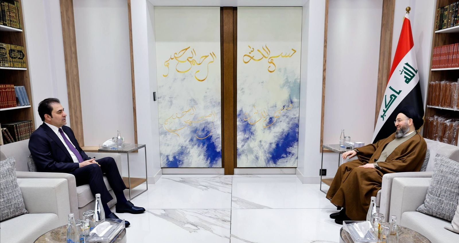 وقال مكتب السيد عمار الحكيم في بيان تلقته وكالة "تنوع نيوز" إن "رئيس تحالف قوى الدولة الوطنية، السيد عمار الحكيم، استقبل في مكتبه صباح اليوم، رئيس تحالف الأساس، محسن المندلاوي"، مبيناً أنه "جرى خلال اللقاء تبادل وجهات النظر حول تطورات المشهد السياسي في العراق والمنطقة، وبحث ملف الاستحقاقات الانتخابية، وانتخاب رئيس الجمهورية، وتشكيل الحكومة".