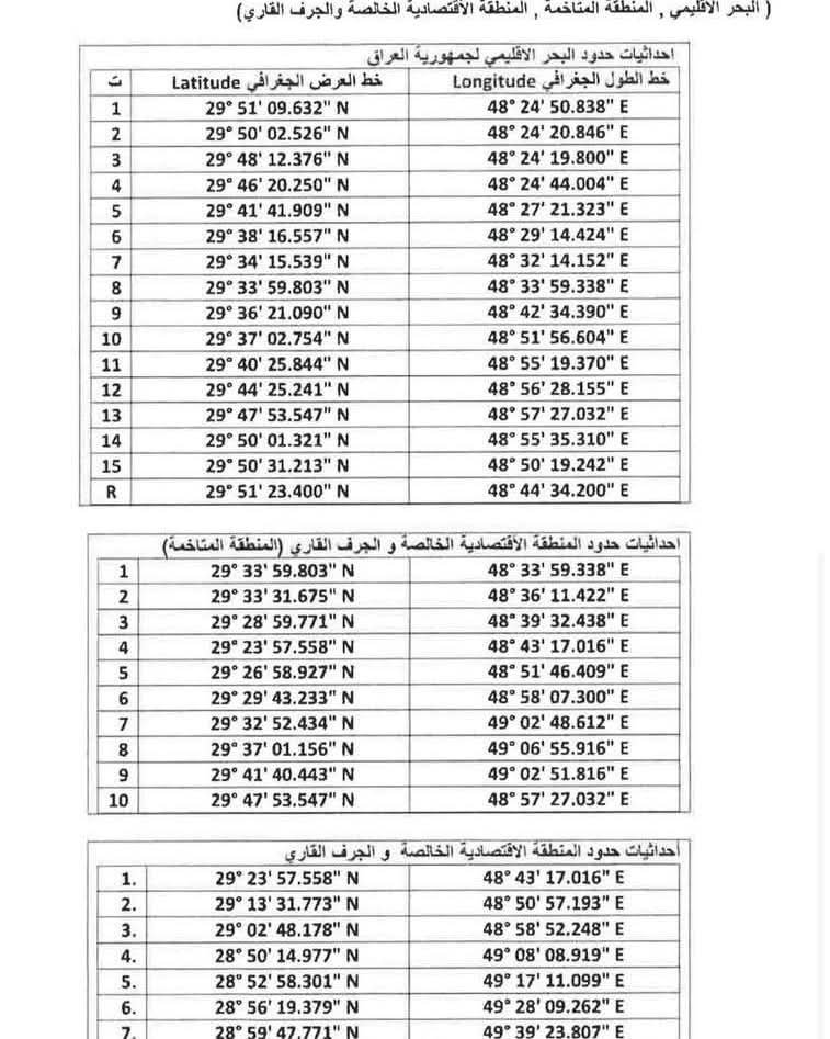وبيّن أن الخارطة تتضمن تحديد الحدود الإقليمية، ولا سيما ما بعد الدعامة 162، بما يسهم في تثبيت الحقوق السيادية للعراق وتعزيز موقفه القانوني في أي مسارات تفاوضية أو قانونية مستقبلية.