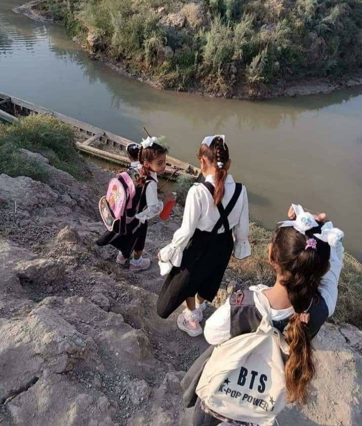 أطفال قرية آل خواف بذي قار يواجهون الموت للوصول إلى المدرسة