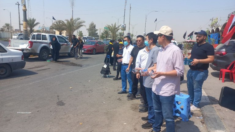 بالصور.. موكب حسيني من جمهورية الصين الشعبية لخدمة زوار الاربعينية