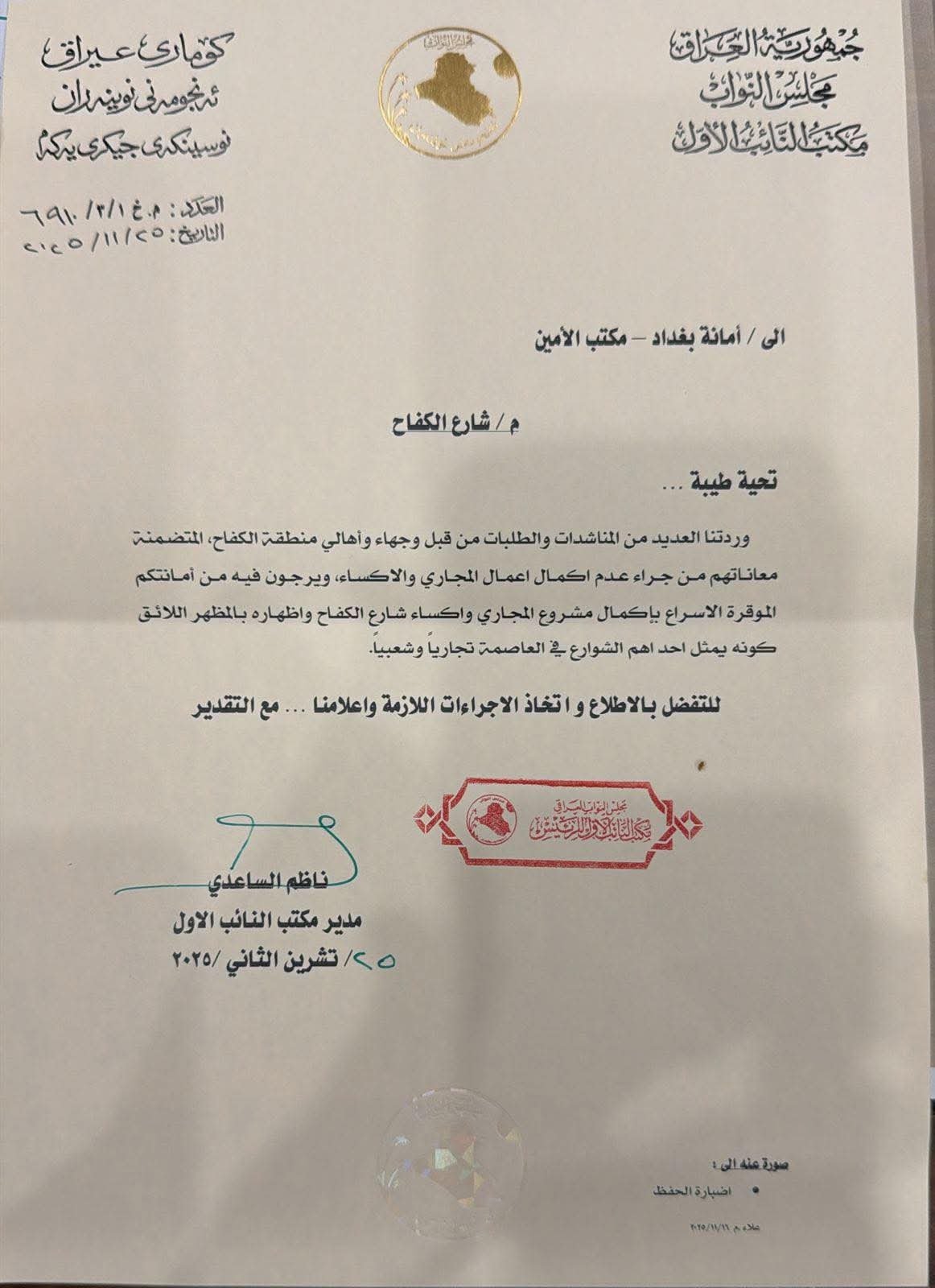 بجهود ومتابعة حثيثة… تحرّك رسمي لخدمة أهالي شارع الكفاح في بغداد وتحسين البنية التحتية