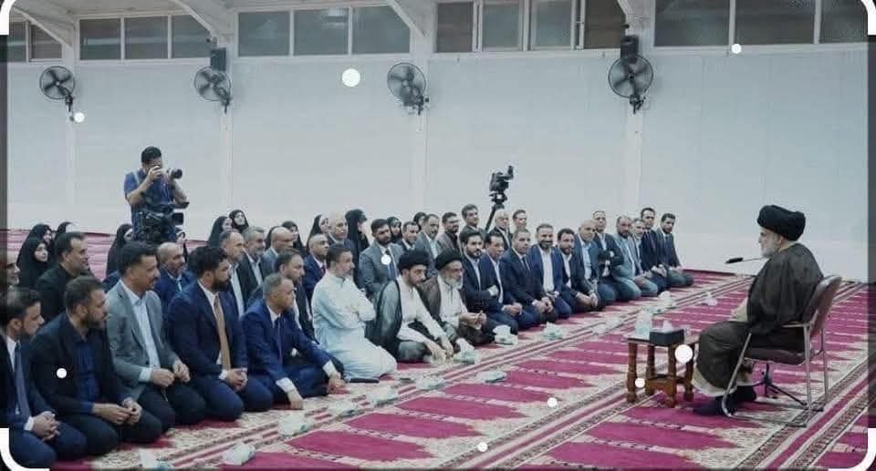 بالصور .زعيم التيار الوطني الشيعي مقتدى الصدر يستضيف اعضاء الكتلة الصدرية المستقيلة وسائرون على مأدبة الإفطار