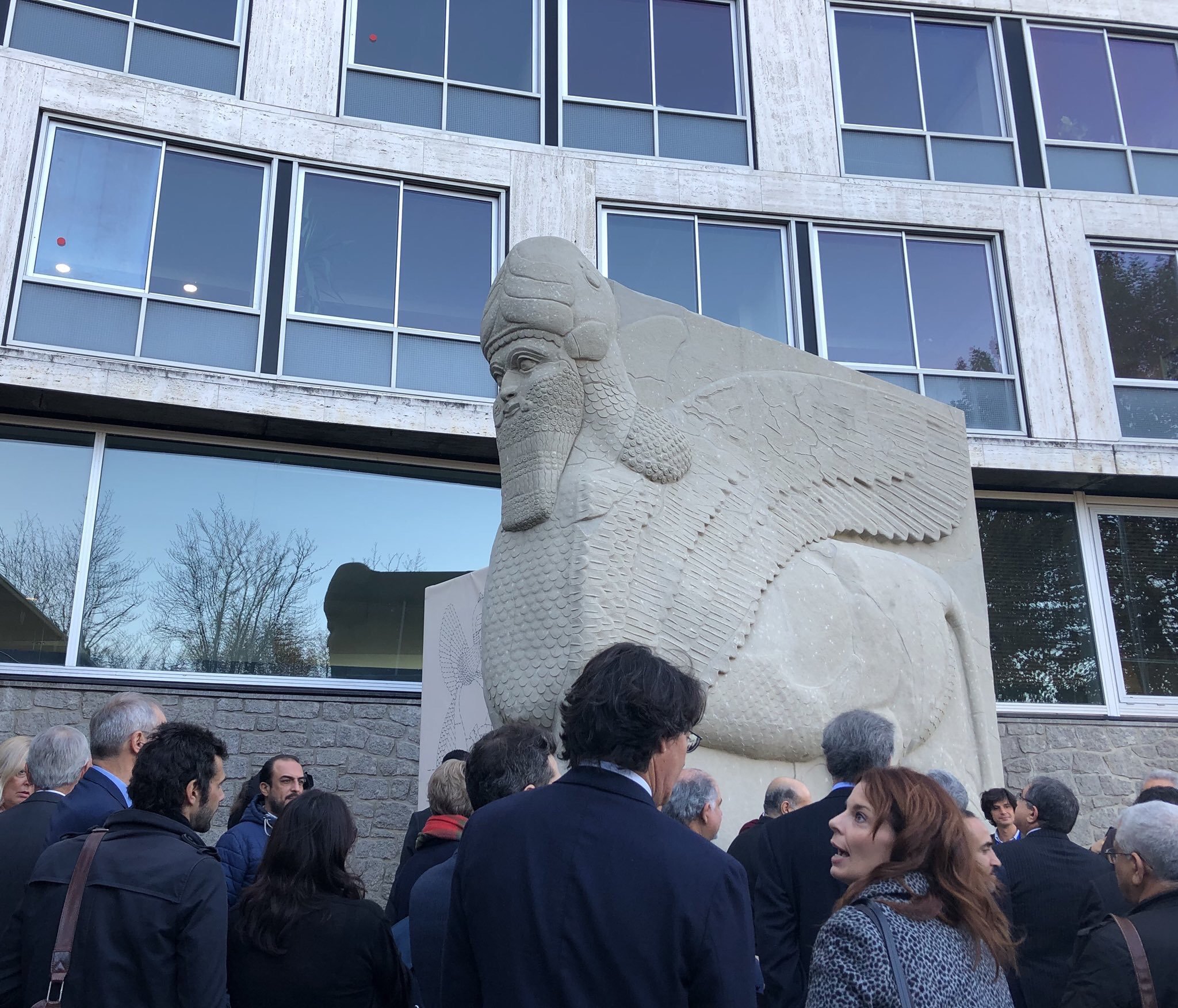 شَحن نسخة من الثور المجنح الآشوري مهداة من ايطاليا الى متحف البصرة لينصب في بوابته.