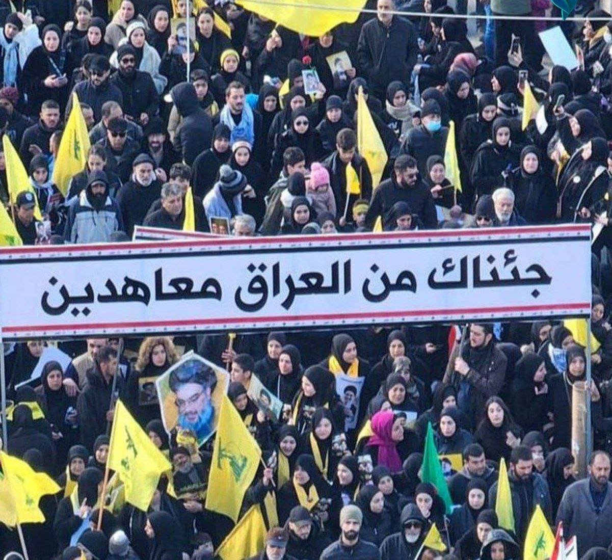 عراقيون يشاركون في مراسم التشييع ببيروت ويقولون: جئناك من العراق معاهدين