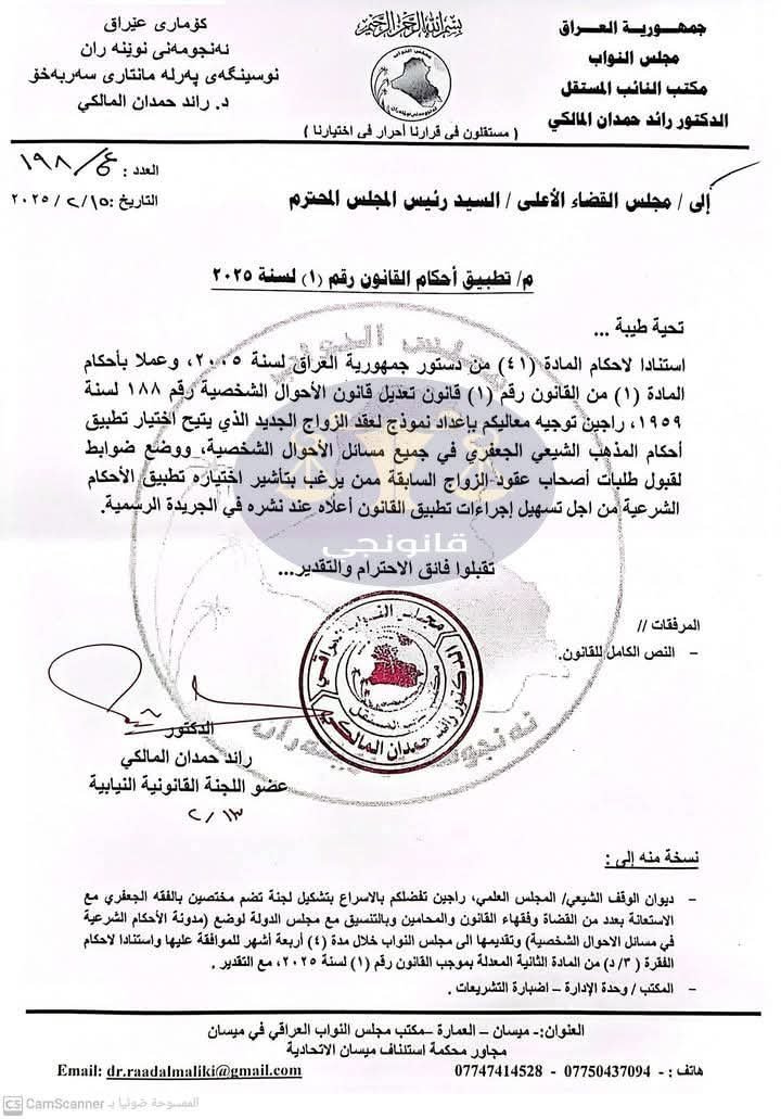 بالوثيقة: جدل في العراق بعد مفاتحة نائب لمجلس القضاء الأعلى بشأن قانون الأحوال الشخصية