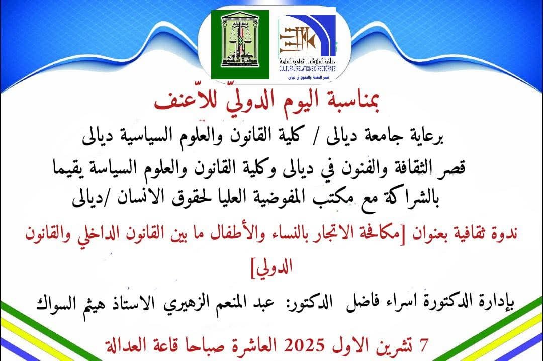 جامعة ديالى تستعد لإقامة ندوة ثقافية بمناسبة اليوم الدولي للاعنف