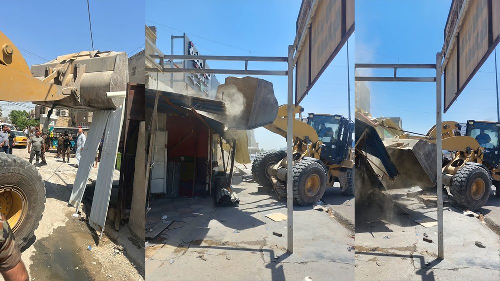 شرطة الرصافة تبدأ حملة إزالة التجاوزات في مناطق بغداد الجديدة والنعيرية والف دار
