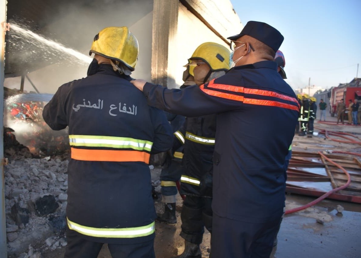 فرق الدفاع المدني تخمد حريقاً اندلع في 5 مخازن تجارية ببغداد