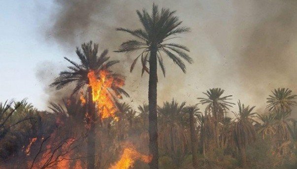 النيران تلتهم بساتين سيد دخيل وفرق الاطفاء تتدخل