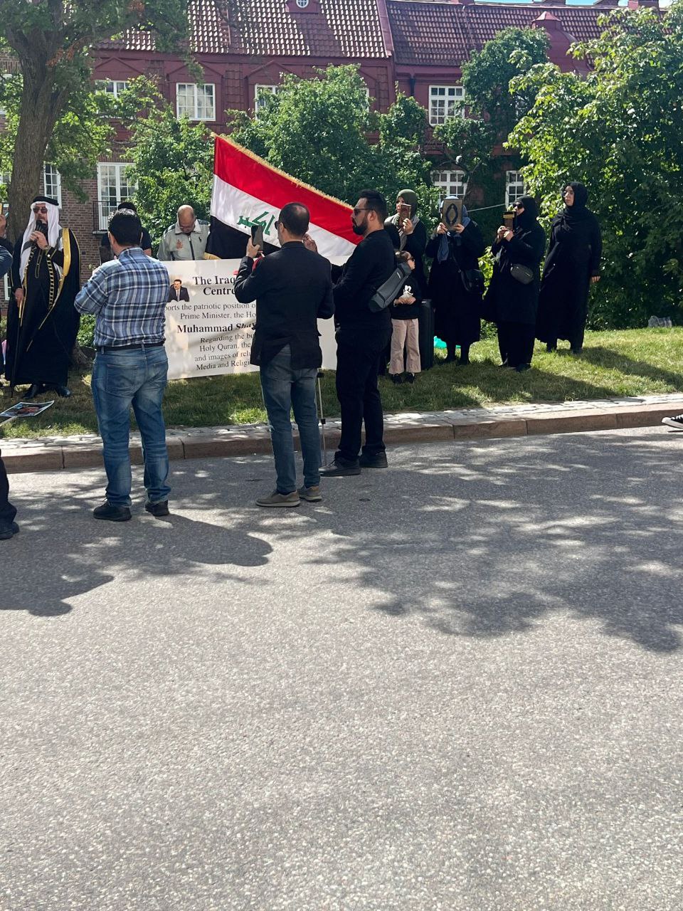وقفة مؤيدة لقرارات السوداني من المكان الذي أُحرق به القرآن الكريم في السويد