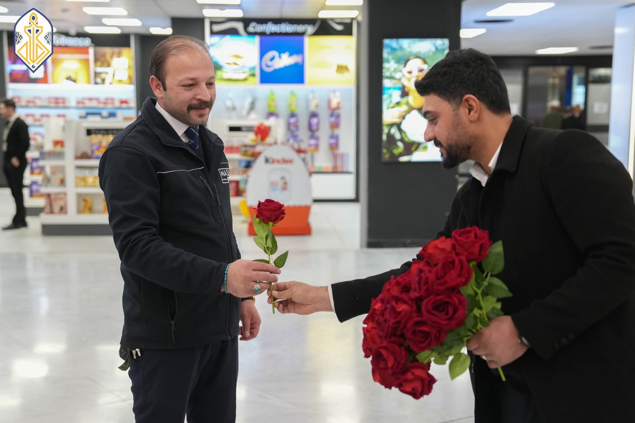 بالصور.. العتبة الكاظمية المقدسة توزّع الورود والتهاني على المسافرين في مطار بغداد الدولي بذكرى ولادتي الإمامين محمد الجواد وعلي بن أبي طالب (عليهما السلام)