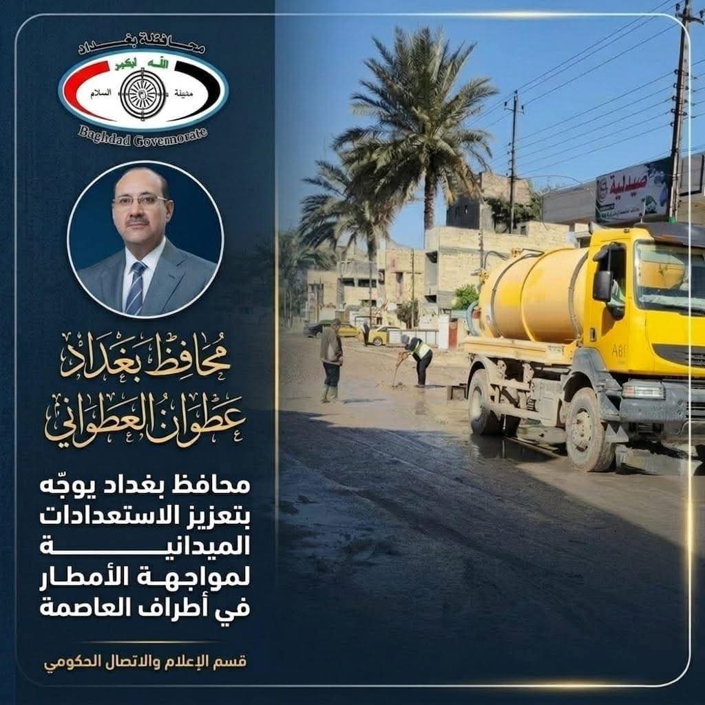 محافظ بغداد يوجّه بتعزيز الجهوزية الميدانية لمواجهة موجة الأمطار في أطراف العاصمة